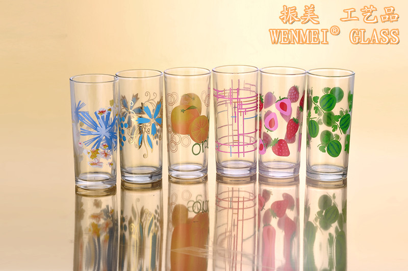 文美贴花印花烤花玻璃杯 单层玻璃杯出口玻璃杯6010-6