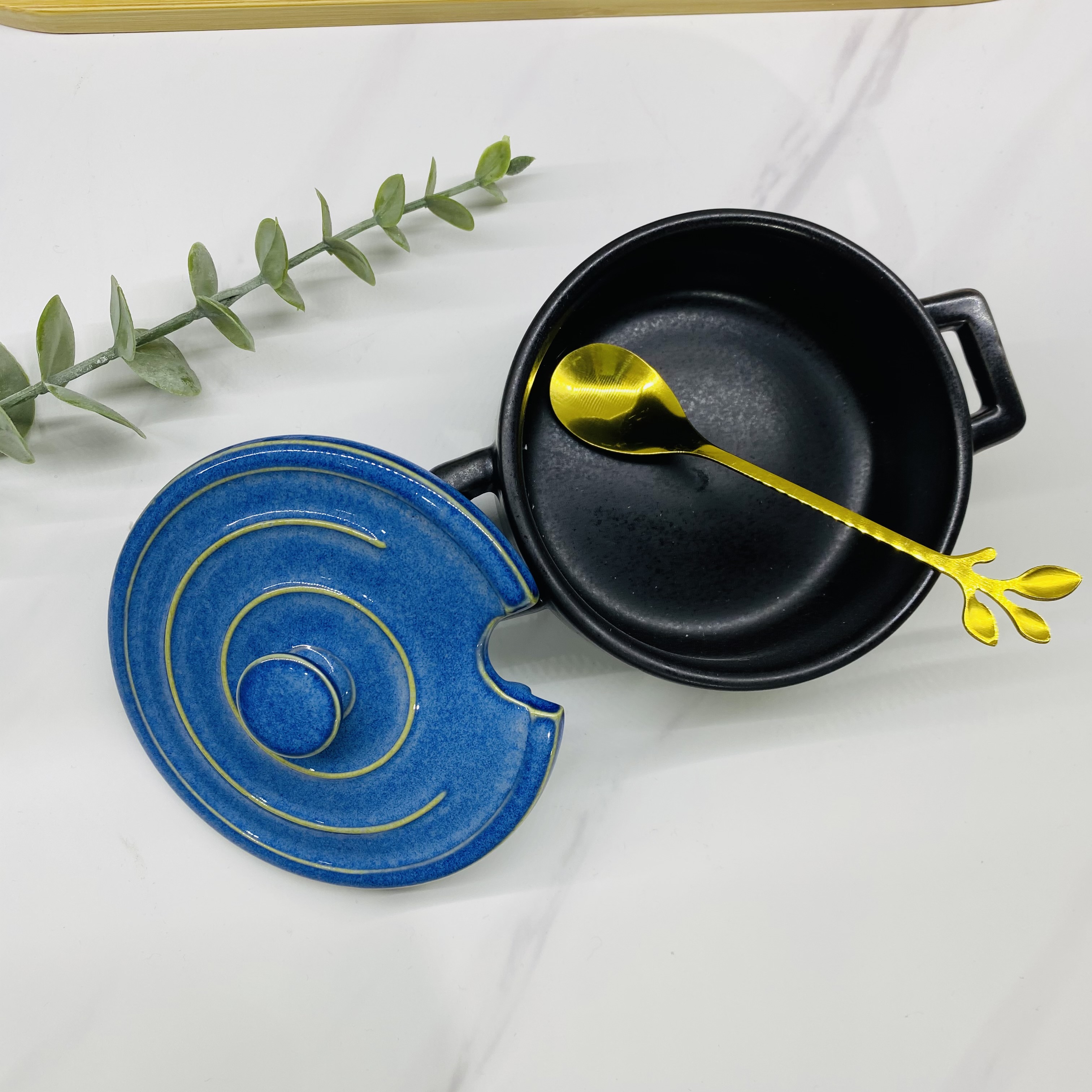 家用中式调料盒厨房陶瓷调味罐辣椒油罐两件套厨房用品