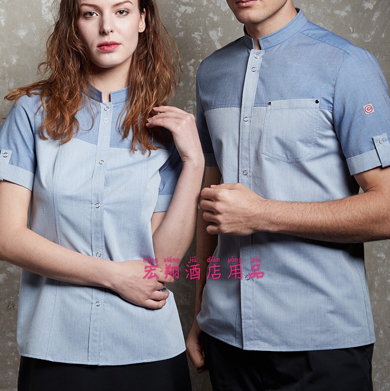 餐厅服务员工作服短袖夏季定制印LOGO酒店火锅茶楼餐饮饭店工装