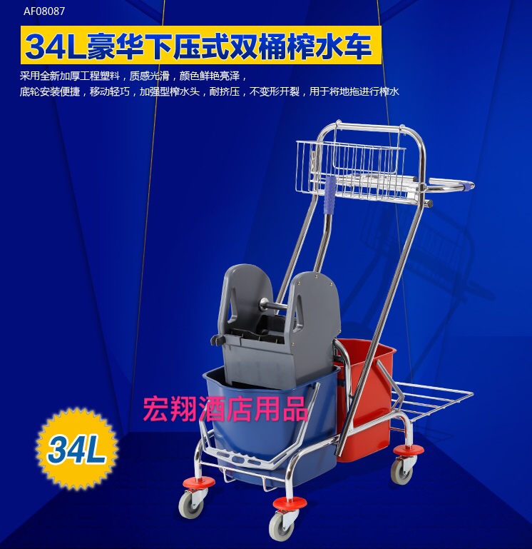 多用途清洁拖把桶双桶榨水车34升酒店墩布挤水桶