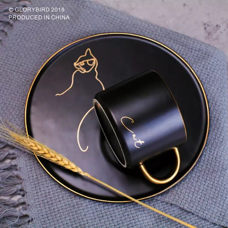 时尚简约个性哑光陶瓷咖啡杯套装盘子早餐马克杯带勺子