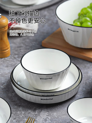 陶瓷餐具幸福元素家用创意黑线陶瓷碗盘子酒店用品礼品