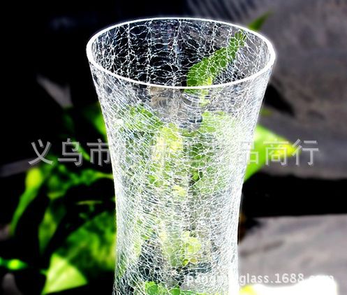 批发透明玻璃花瓶 厂家直销时尚碎冰透明玻璃花瓶 供应玻璃花瓶