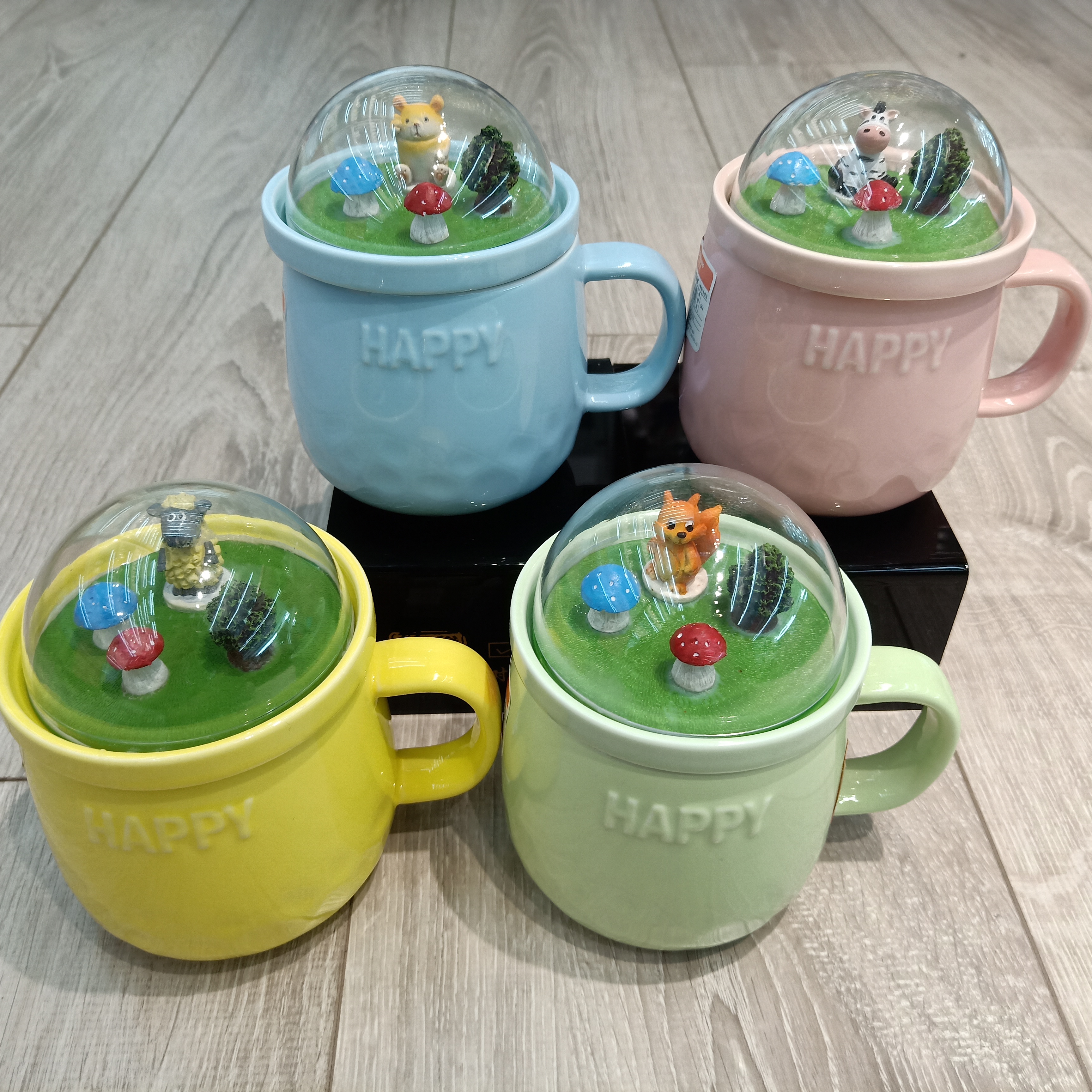 创意时尚陶瓷杯子 简约卡通带盖 礼品杯