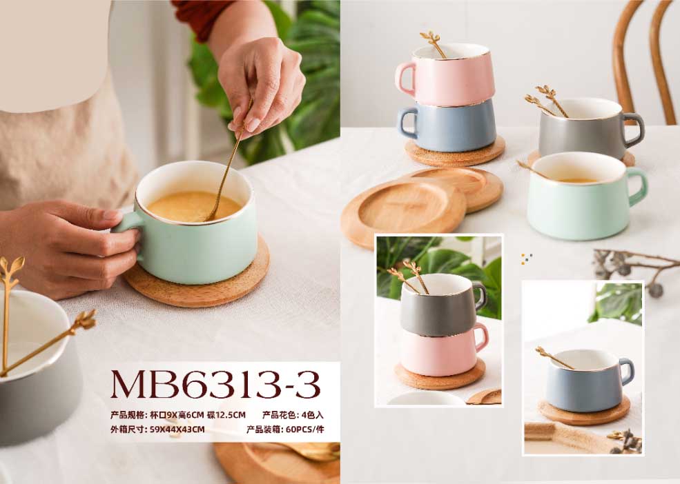 欧式轻奢咖啡杯(马卡龙色+木垫)马克杯陶瓷杯子家用