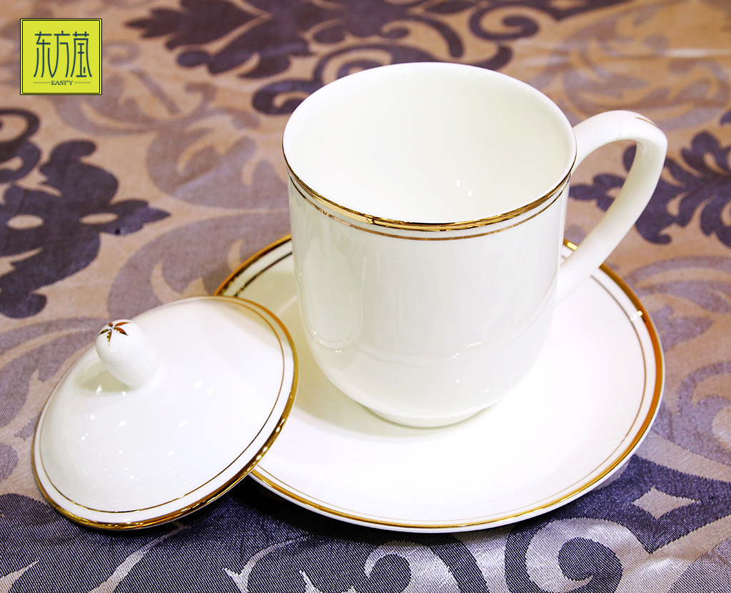 东方莹骨瓷会议杯骨质瓷盖杯陶瓷会晤杯盖杯陶瓷盖杯定制杯子印字