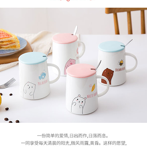 创意潮流陶瓷杯子韩版带盖勺马克杯水杯家用早餐咖啡杯