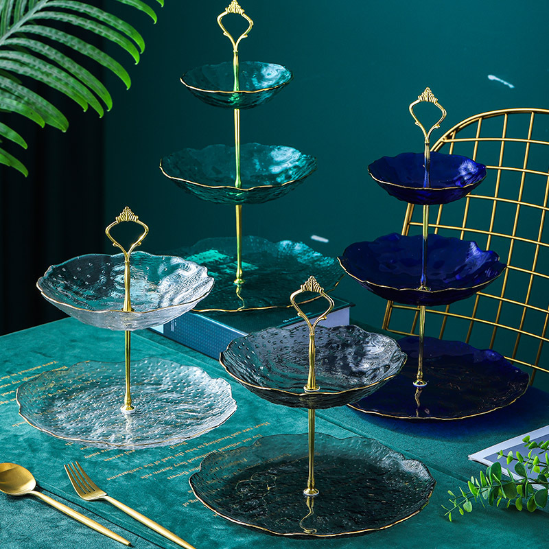 北欧式创意家用多层双层糖果盘蛋糕甜品点心金边不规则冰点盘摆件