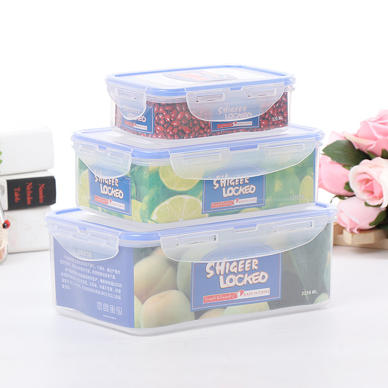 批发厨房塑料保鲜饭盒套装 长方形乐扣微波炉冰箱食品收纳密封盒