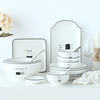 家用J鼹鼠可爱卡通小清新盘子创意欧式圆形西餐盘碟碗