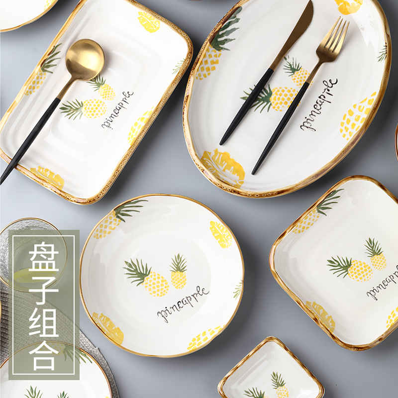 网红盘子特色餐具菠萝菜盘 家用创意ins风鱼盘子日式新款餐盘碟子