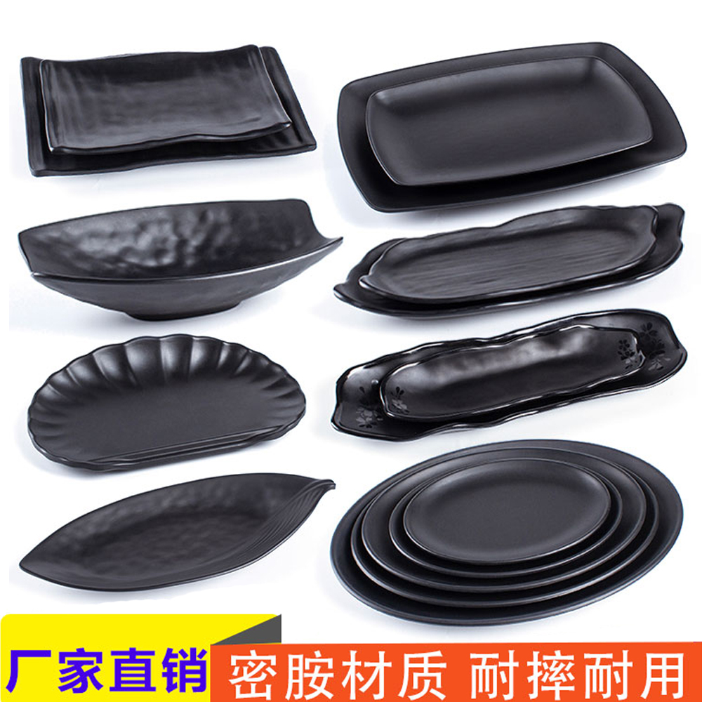 长方形黑色磨砂密胺盘子餐具厂家直销现货批发