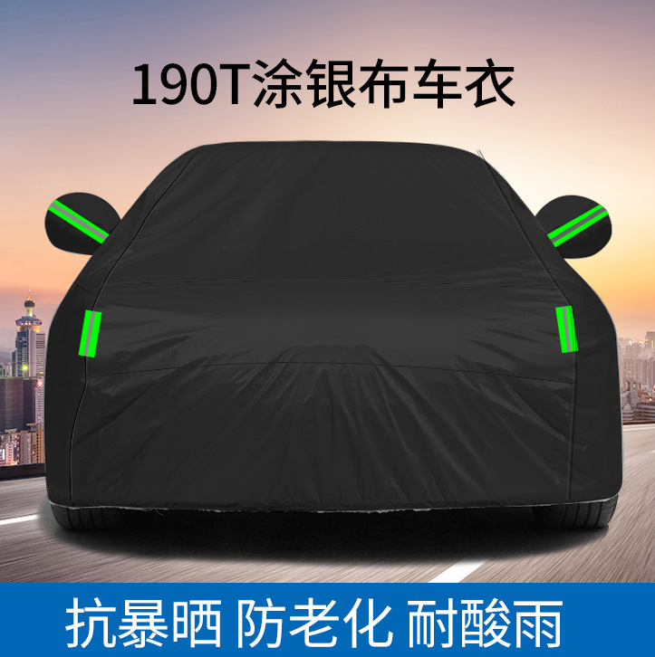 车衣车罩全黑色190T涂银布汽车车衣防雨防晒带车套涤纶反光条车衣