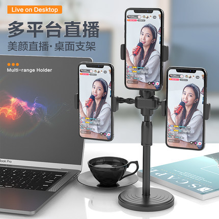 手机支架 话筒麦克风圆盘桌面升降伸缩自拍带货直播支架工厂批发