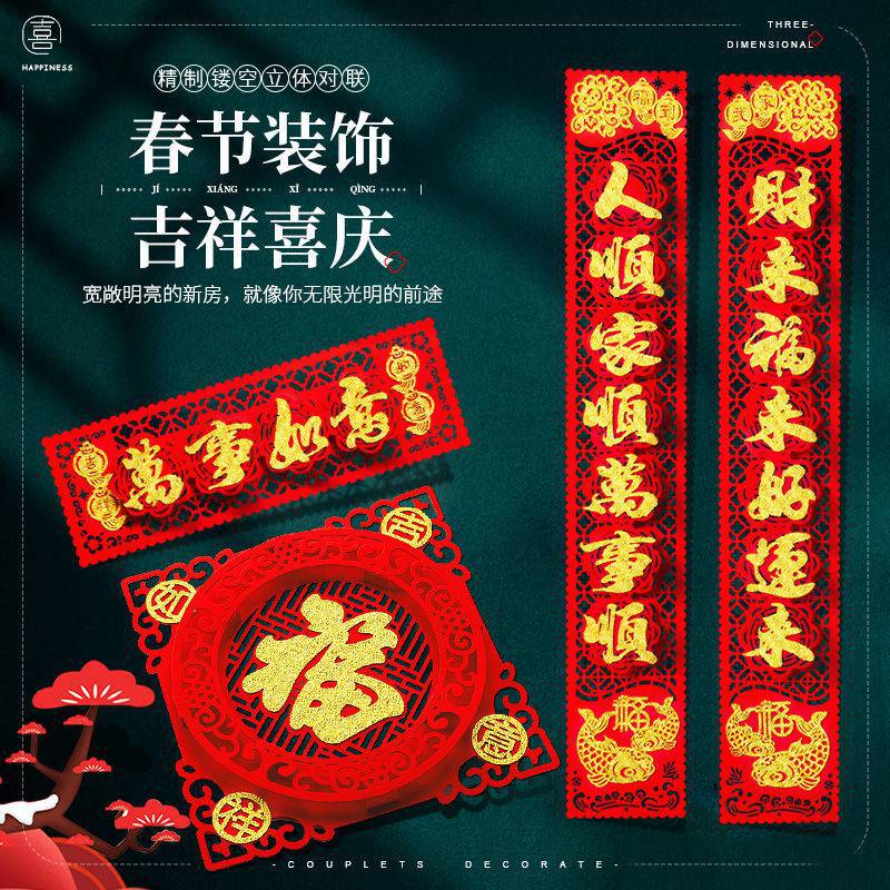 对联春联虎年2022过年新款大全自粘福字贴春节大门家用装饰品代发