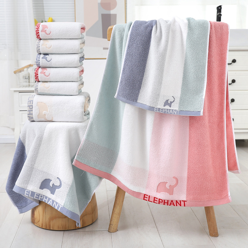 厂家批发加厚毛巾浴巾套巾色线小象提花商场超市日用品刺绣logo