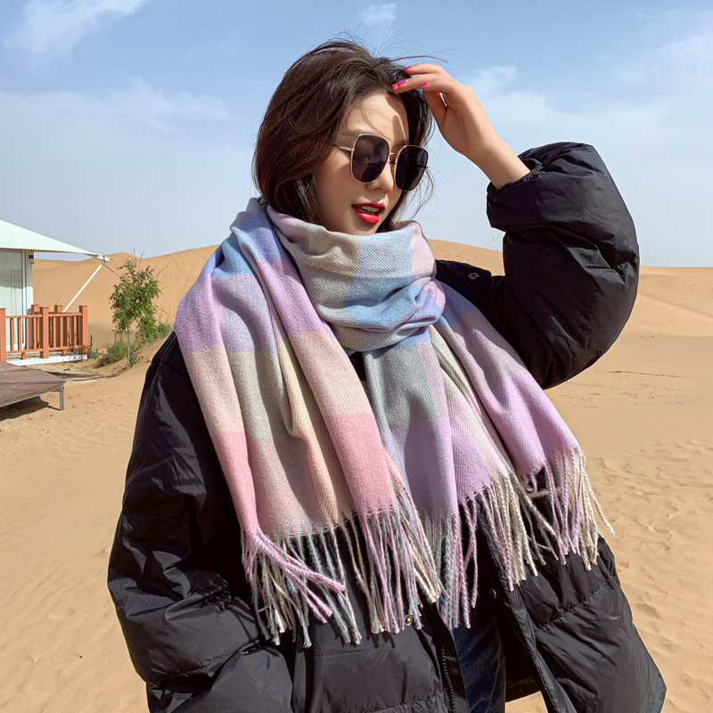 韩版秋冬季新款围巾女仿羊绒百搭保暖加厚格子围脖两用冬季大披肩