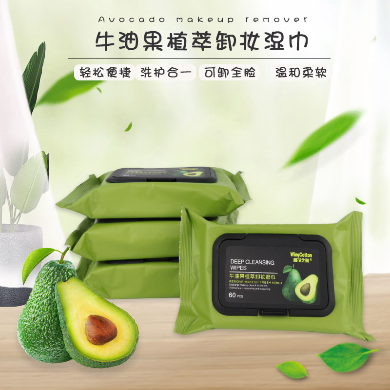 棉花之翼牛油果60片装大规格深层脸部卸妆巾一次性便携卸妆湿巾