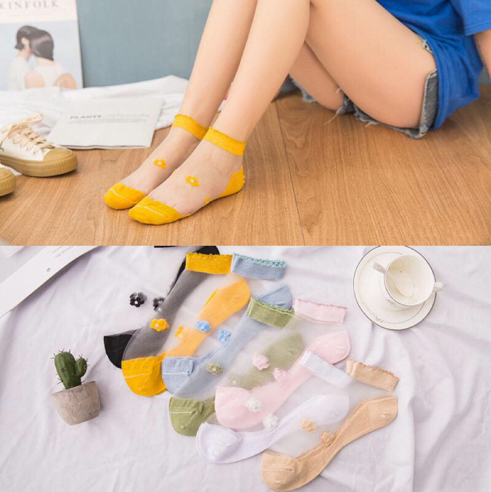春夏新款棉底丝袜女短筒吸汗防滑卡通水晶丝玻璃丝袜辽源厂家批发