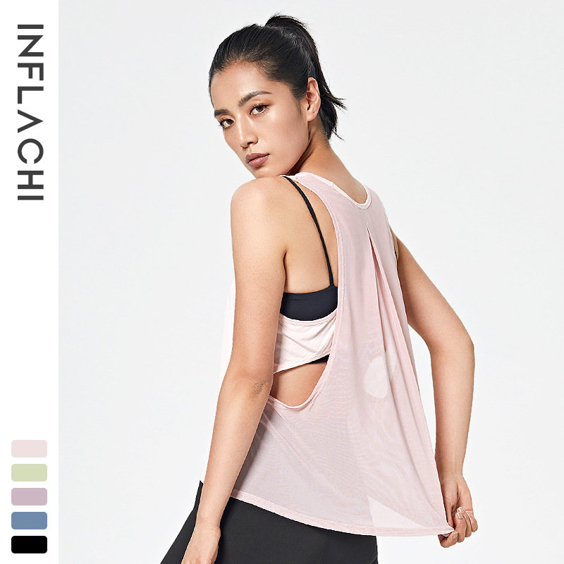 瑜伽服女夏运动户外健身跑步透气网纱T恤上衣宽松速干短无袖背心