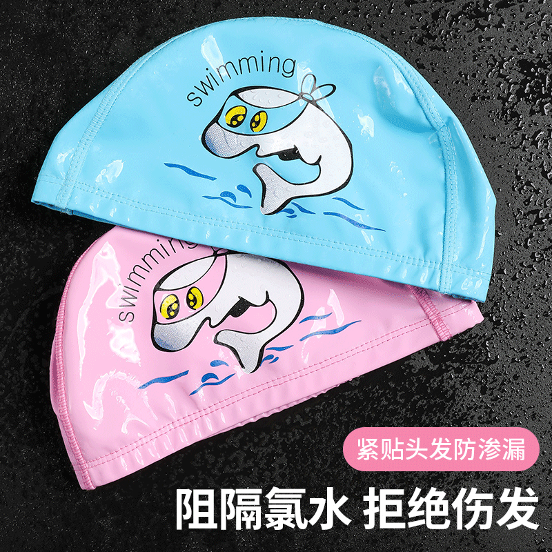 儿童泳帽批发PU印花男女孩可爱游泳弹力帽子小学生游泳馆装备泳帽