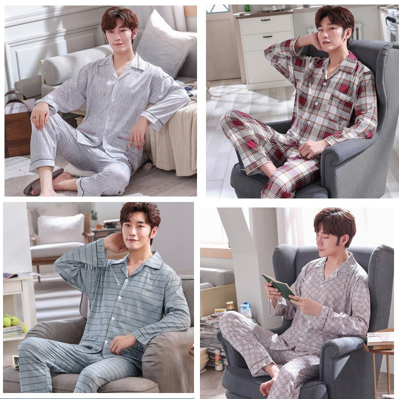 睡衣男士长袖青年睡衣套装春秋季新款宽松开衫翻领可外穿家居服男