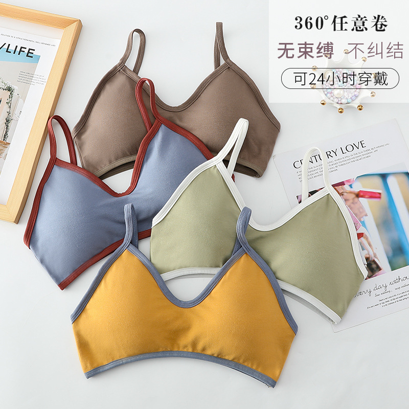 日系撞色可拆卸按摩颗粒立体杯垫舒适修身弹力固定吊带小背心