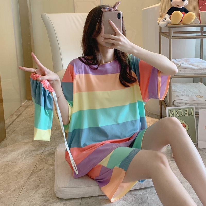 厂价直销短袖短裤睡衣女夏薄款牛奶丝甜美可爱宽松家居服休闲套装