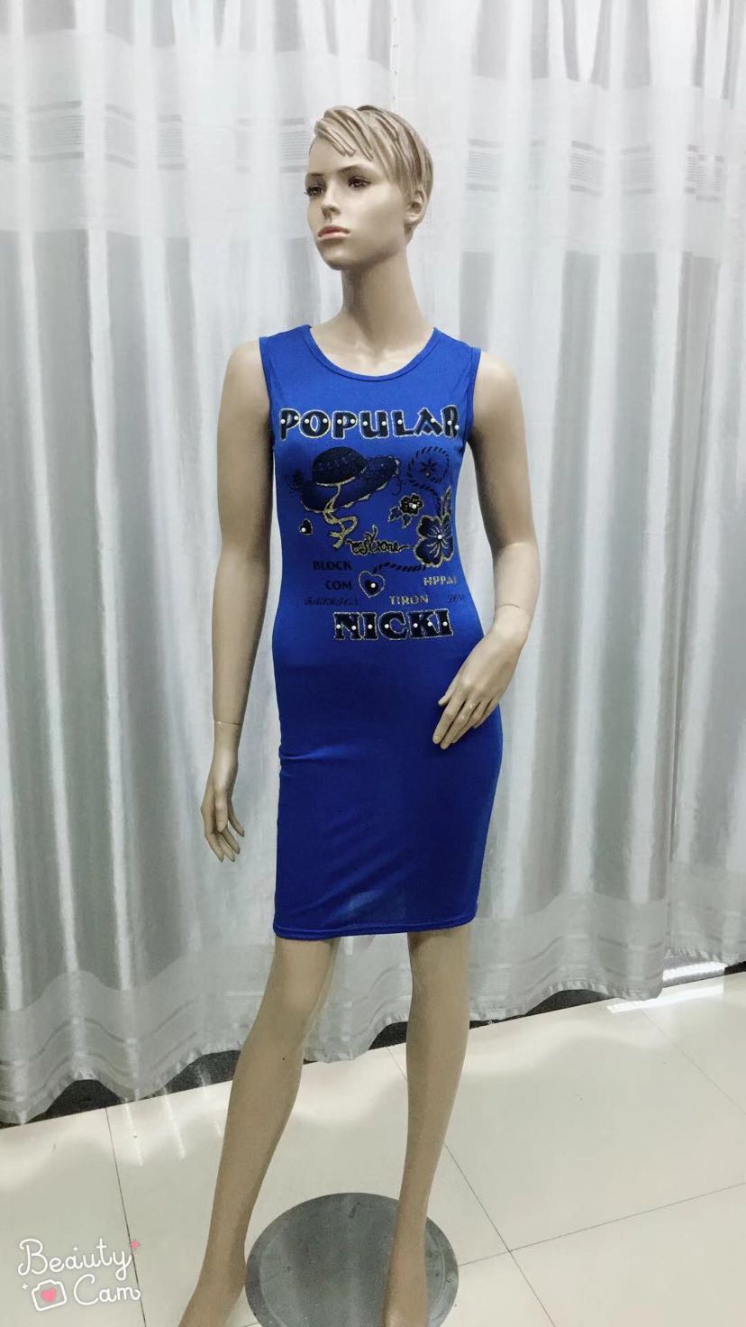 牛奶丝涤纶印花钉珠背心连衣裙