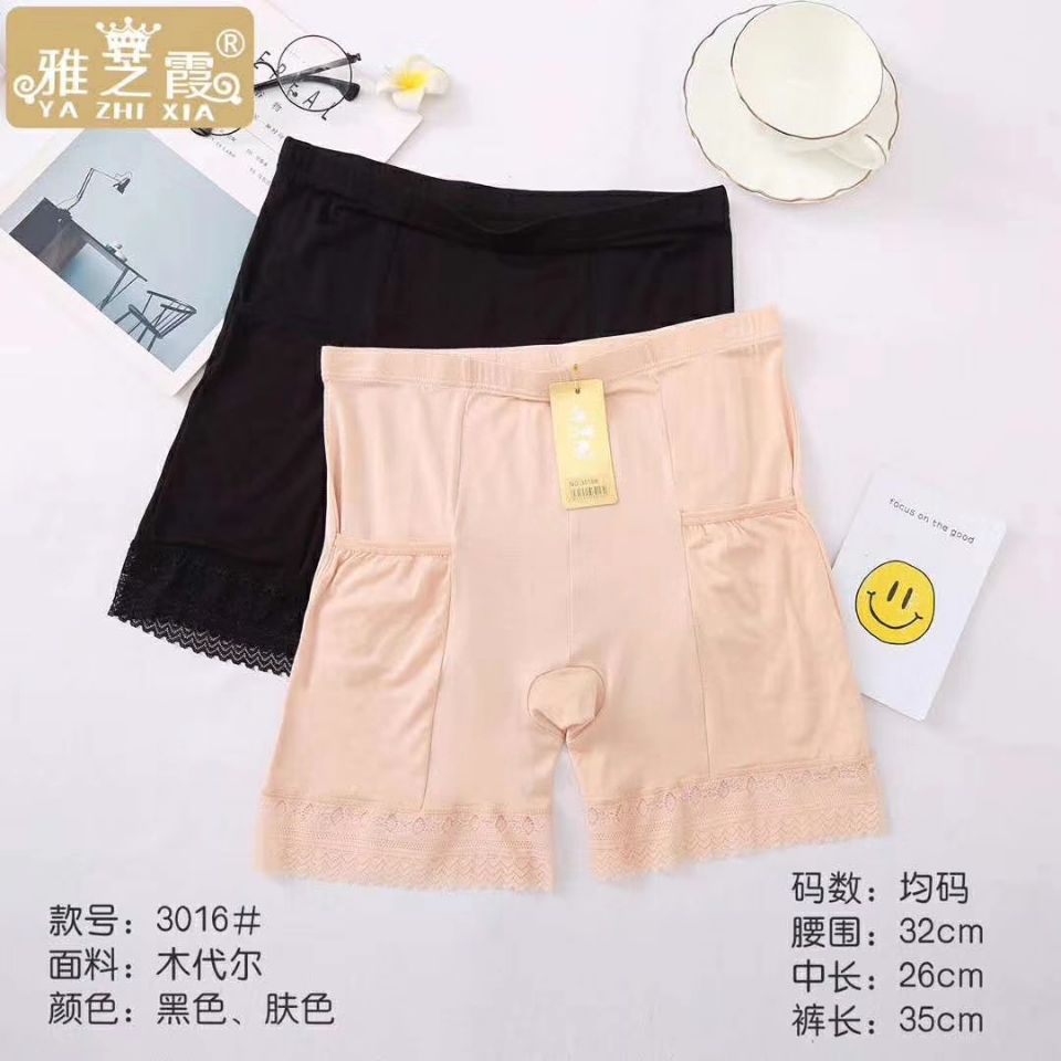 莫代尔口袋安全裤防走光夏女士中腰大码保险裤平角花边安全裤