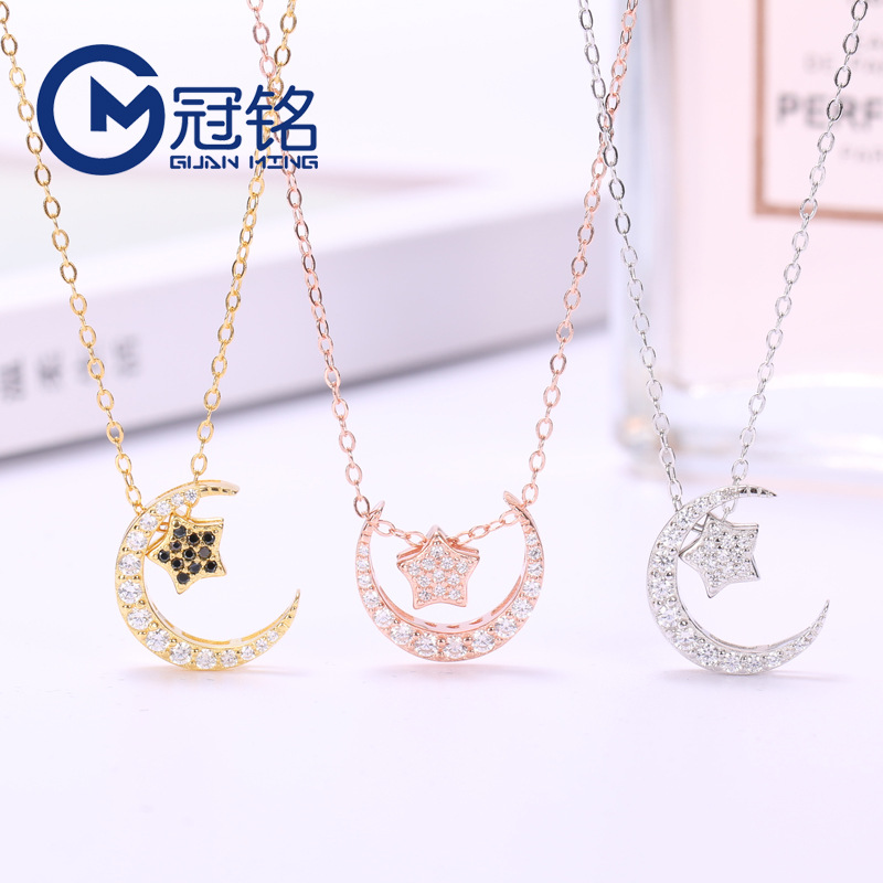 冠铭星月项链纯银女 s925银简约星星月亮项坠 潮流饰品个性锁骨链