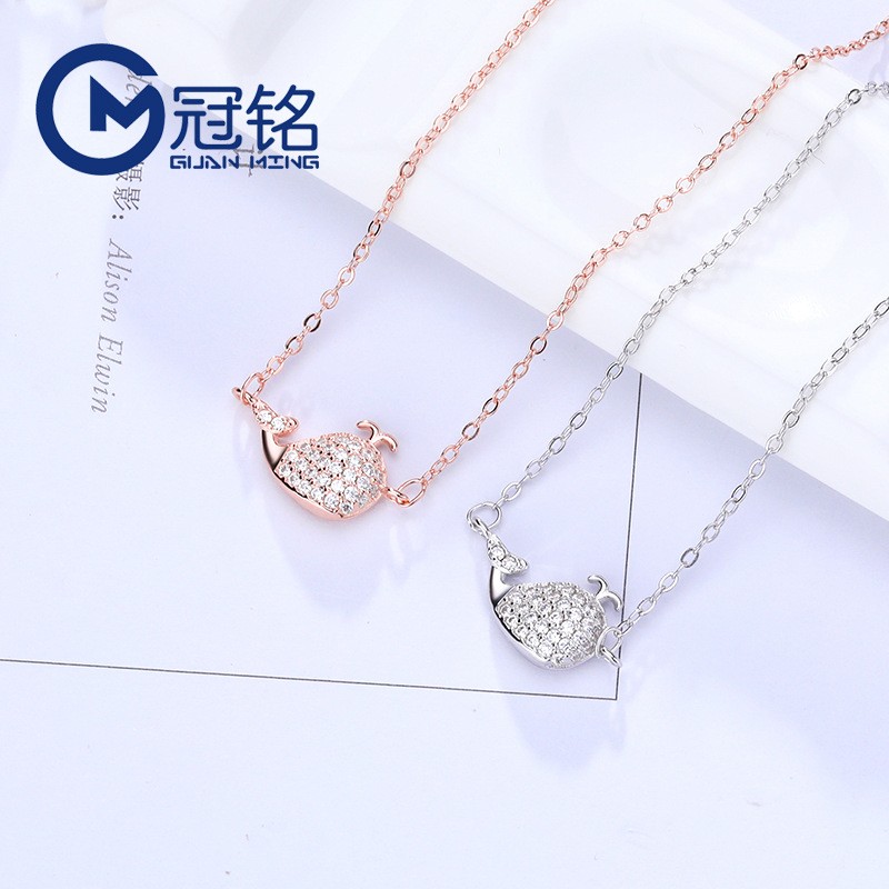 海豚微镶项链S925纯银时尚项链女欧美跨境外贸饰品短款锁骨链配饰