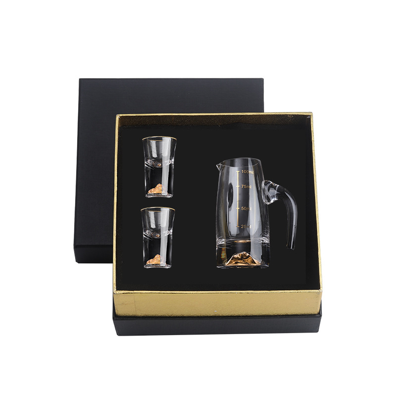 创意礼品礼盒金箔金山白酒杯分酒器礼盒套装家用无铅水晶玻璃送礼