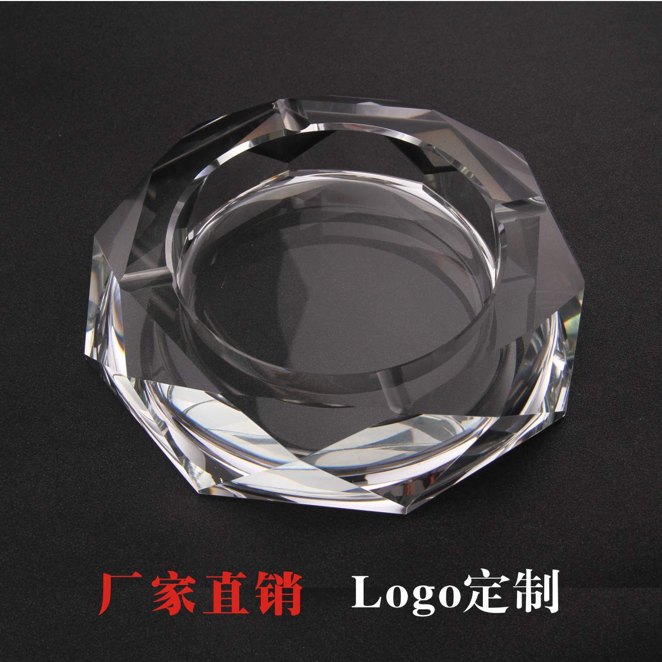 创意个性潮流欧式卧式八角时尚圆形办公室透明水晶烟灰缸批发定制
