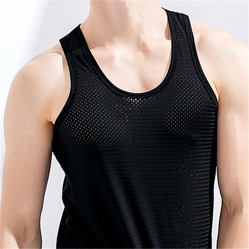 夏季背心男士冰丝网眼冰凉冷感衣透气速干运动宽松镂空无袖T恤