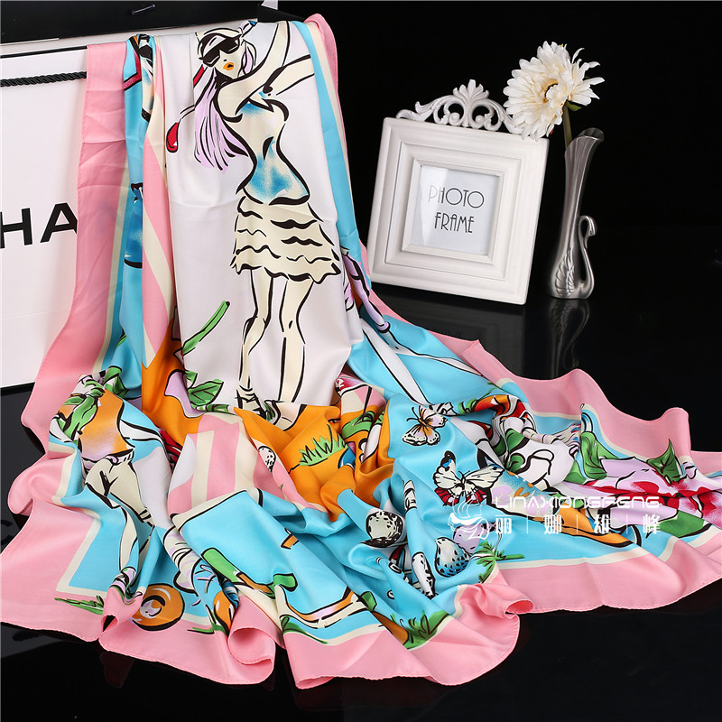 春季新款欧美风高尔夫印花真丝丝巾 女方巾