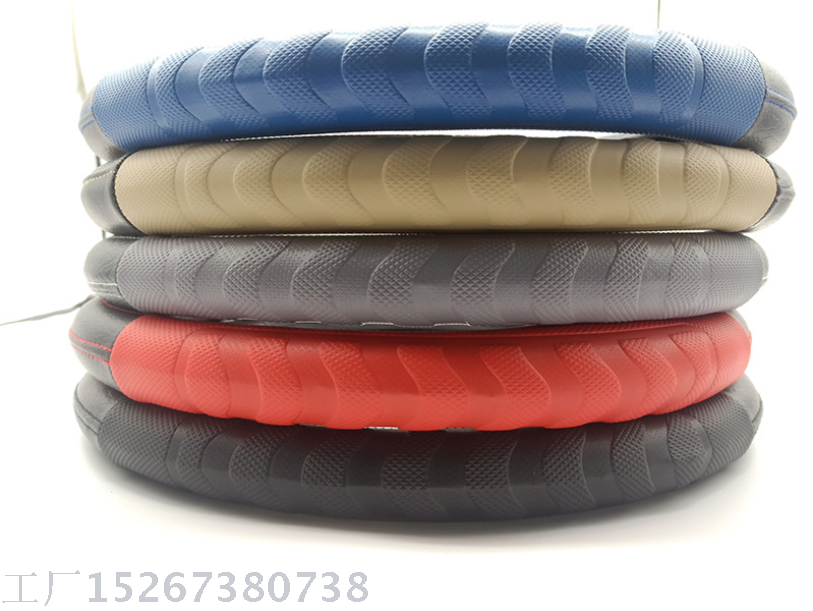汽车方向盘套压花拼接把套四季皮革手缝方向盘套内饰用品厂家直销
