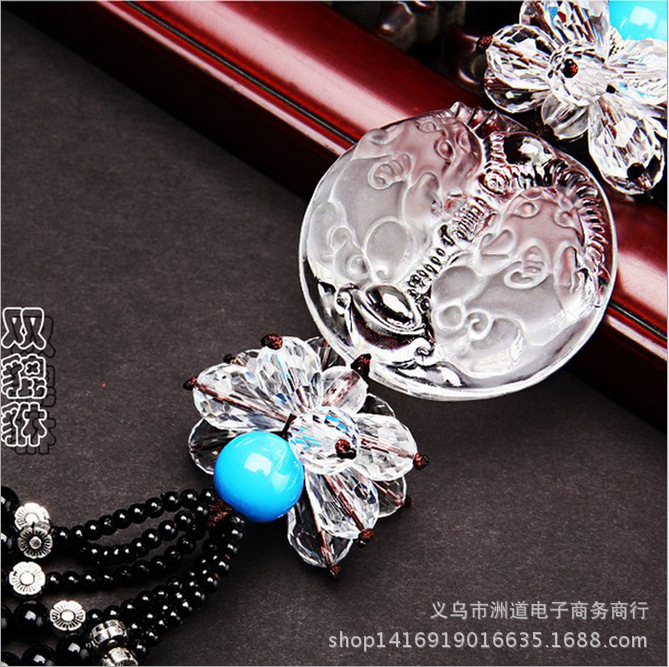 汽车白水晶挂件车用内饰挂件白水晶车挂 创意水晶双貔貅佛像挂件