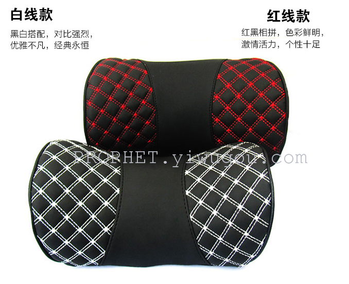 汽车红酒头枕 车载U型枕头 皮革头枕 红线白线