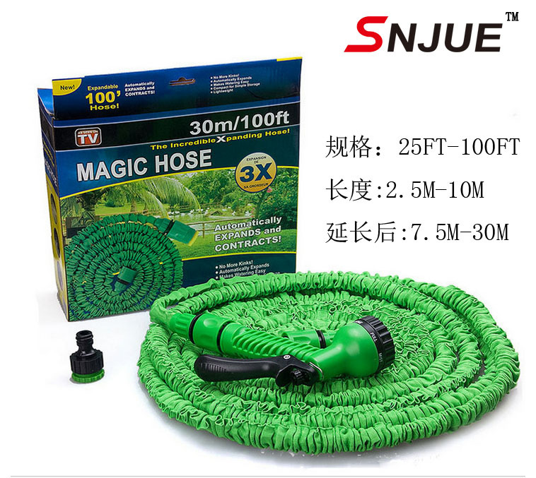 25FT-100FT伸缩水管水枪套装 多功能水枪头7种水花 配全套接头