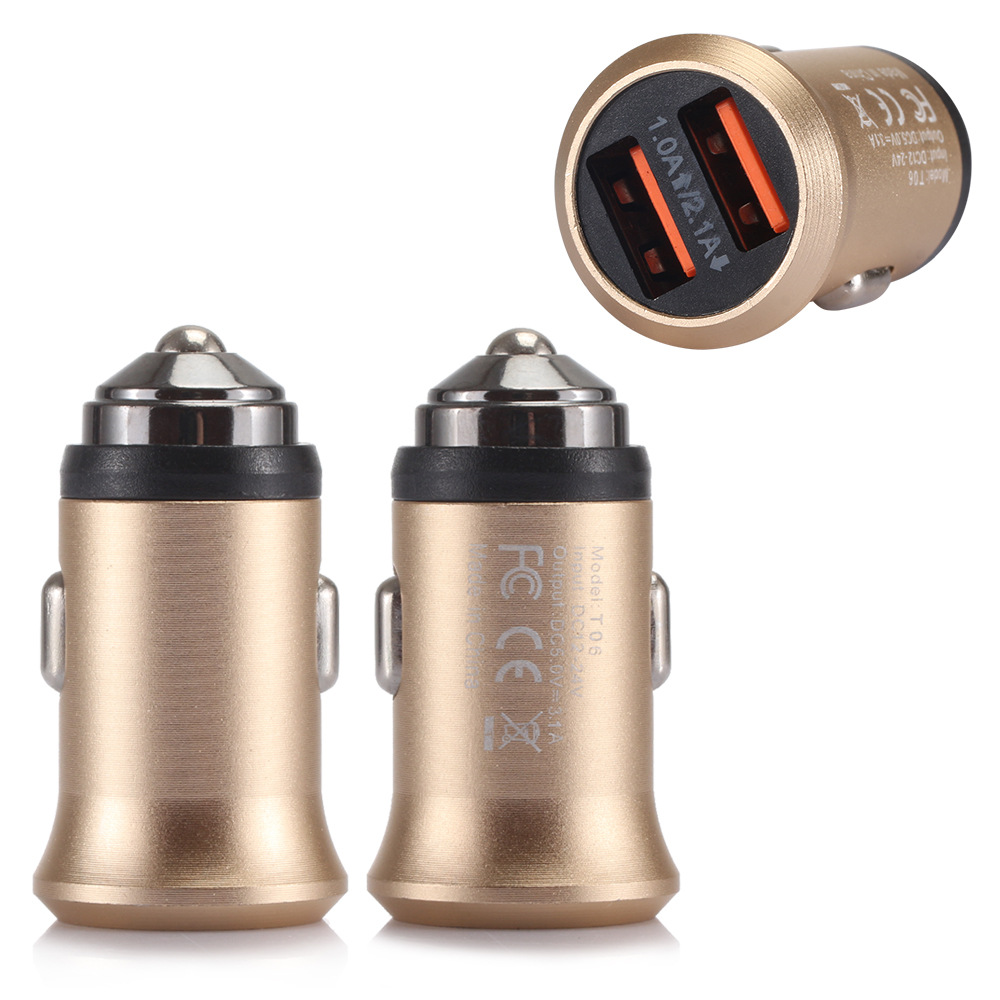 5V2.4A迷你双USB铝合金车充 车载充电器 多功能汽车手机充电器