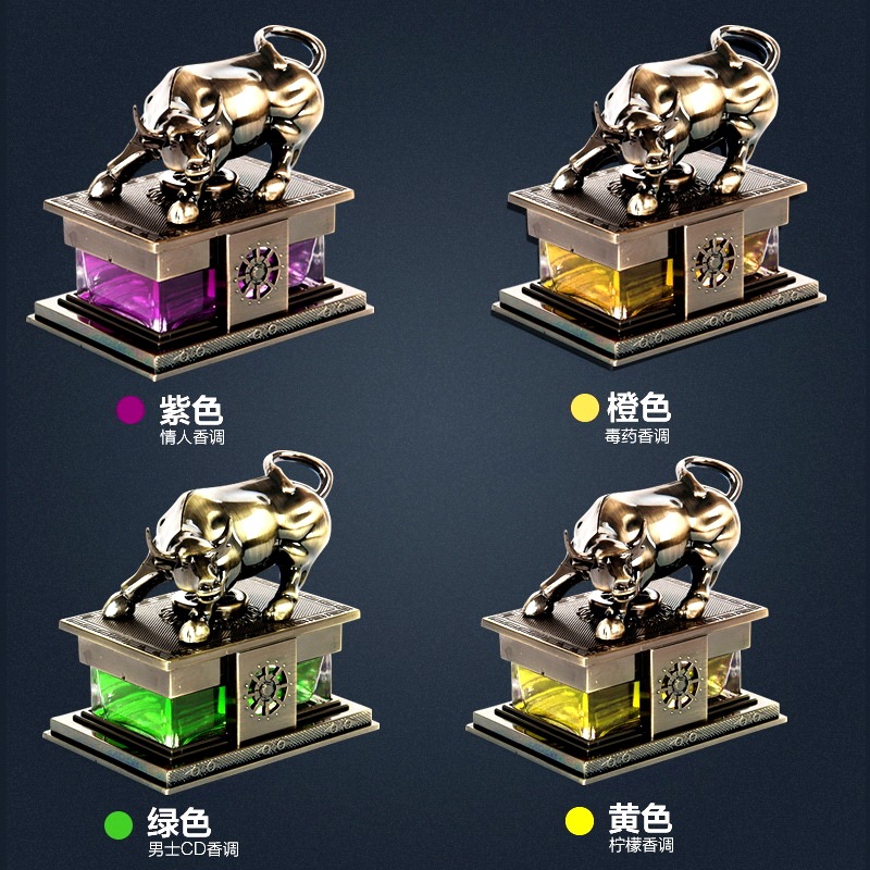 新款华尔街牛汽车香水座 古铜牛车载香水复古牛香水座牛气冲天