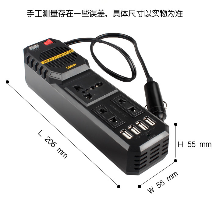 200W迷你车载逆变器12V转220V新品户外汽配类畅销逆变器转换器