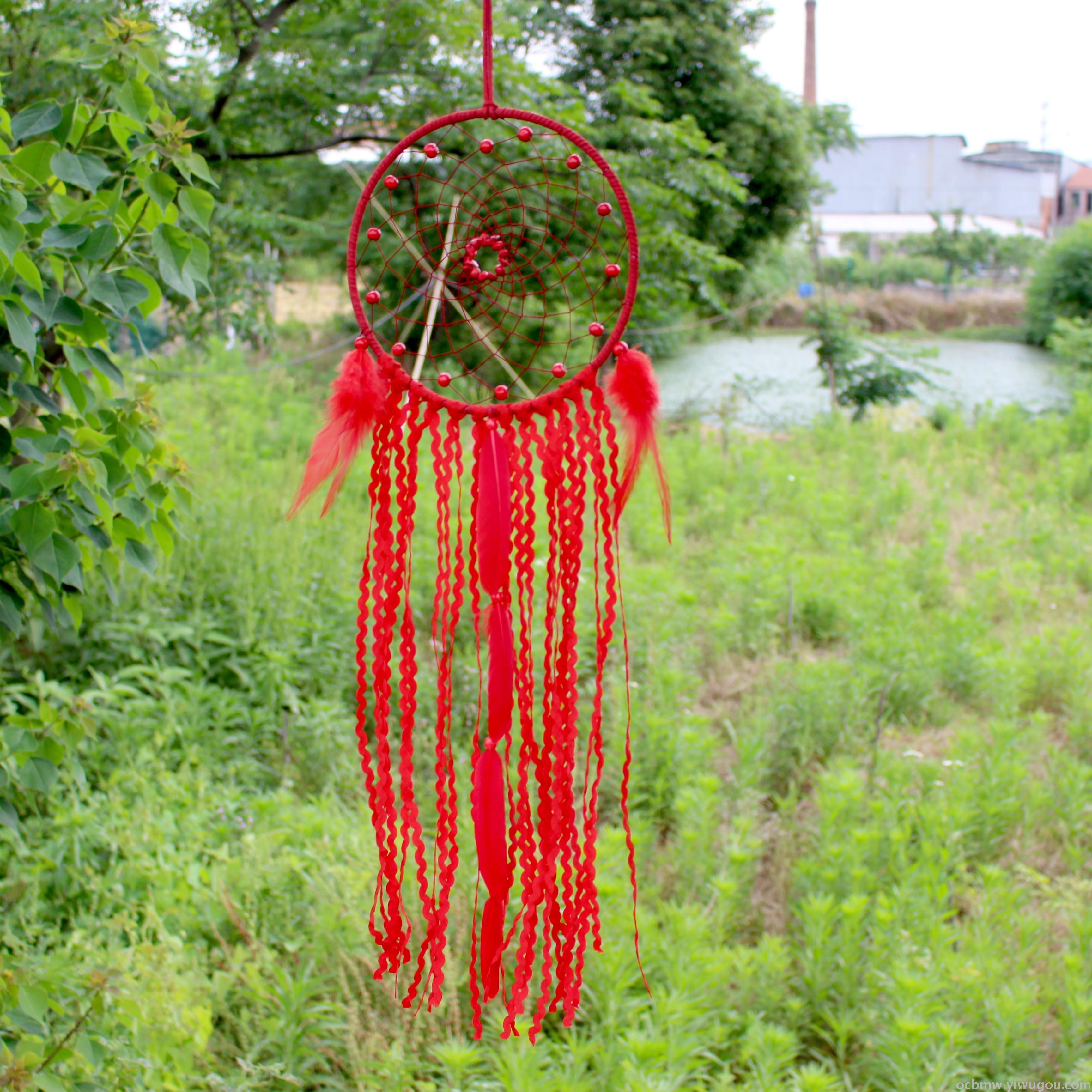 原创波西米亚风格捕梦网天然碎石红色织带婚庆装饰