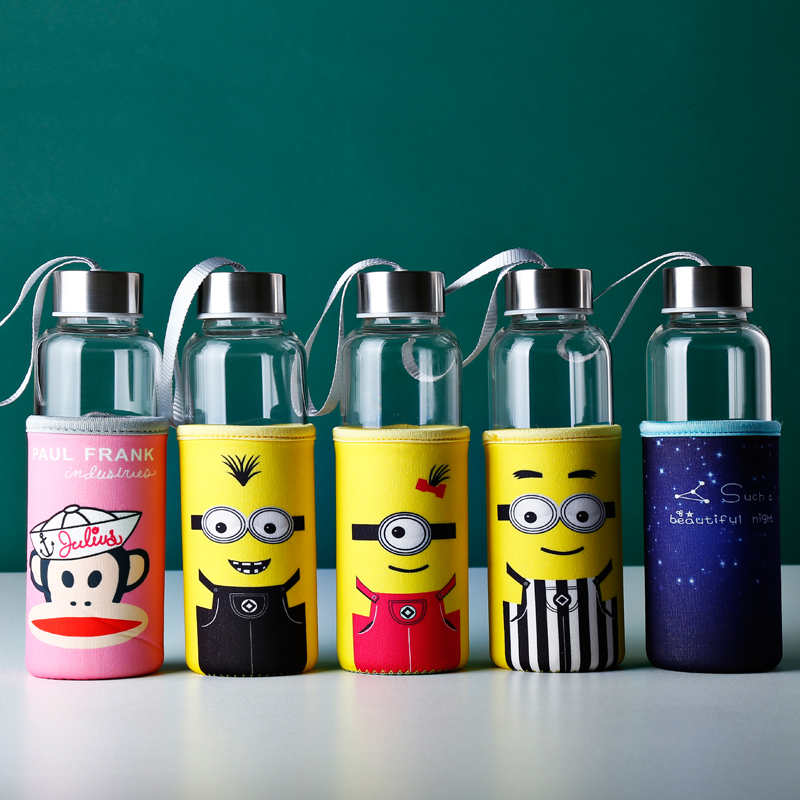 高硼硅玻璃杯 耐高温卡通玻璃水杯儿童学生杯茶水杯370ml