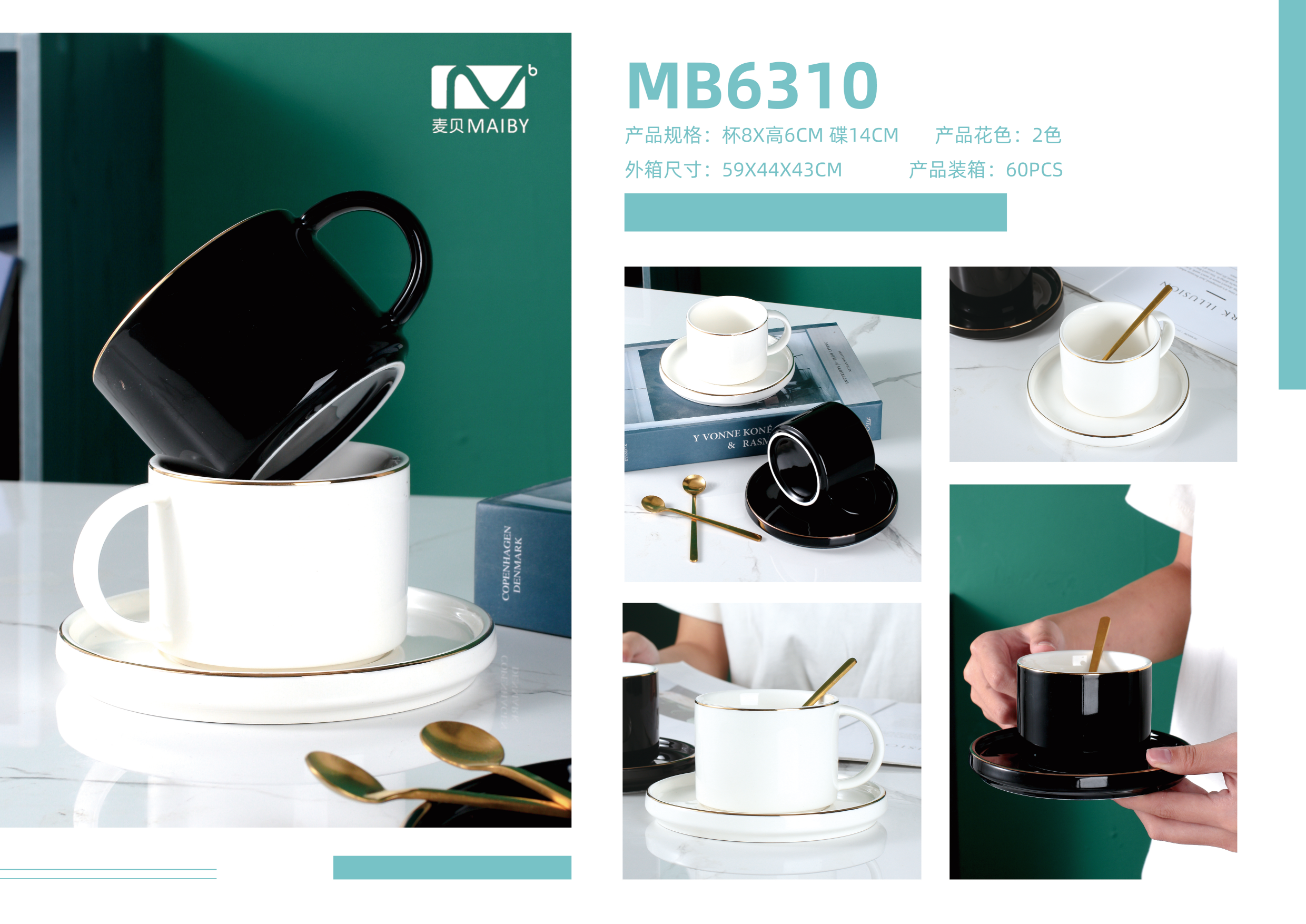 轻奢金边 简约黑白咖啡杯陶瓷杯子咖啡杯家用情侣水杯茶杯