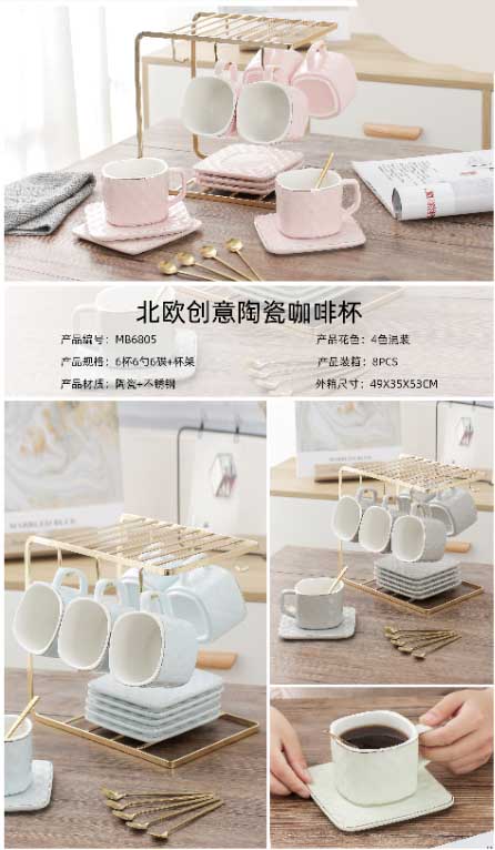北欧创意陶瓷咖啡杯6杯碟马克杯陶瓷杯子咖啡杯家用情侣水杯茶杯