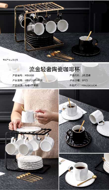 鎏金轻奢咖啡杯马克杯陶瓷杯子咖啡杯家用情侣水杯茶杯