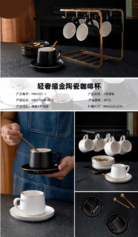 复古轻奢描金陶瓷咖啡杯马克杯陶瓷杯子咖啡杯家用情侣水杯茶杯