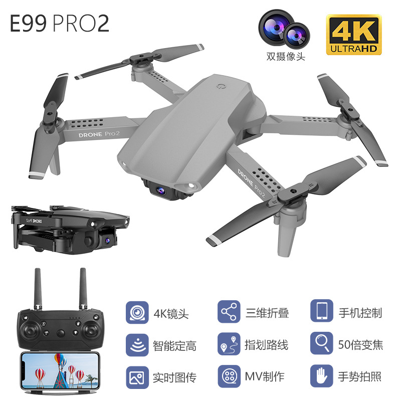 E99 Pro无人机双摄像 折叠定高遥控飞机 高清航拍四轴飞行器 跨境